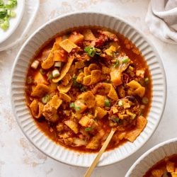 - Serve topped with grated cheese, green onions, tortilla chips or your favorite toppings!