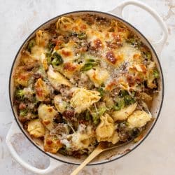 Baked Broccoli Sausage Tortellini.